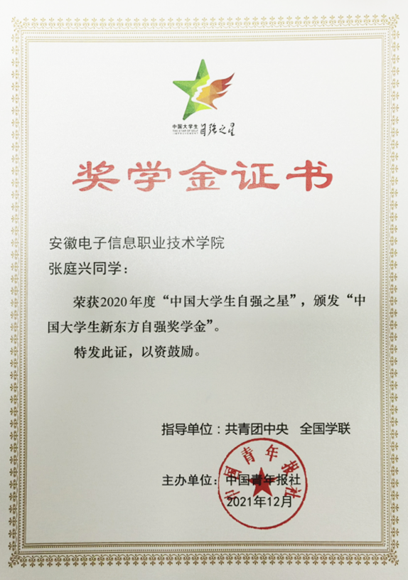 荣获学校自强之星奖学金